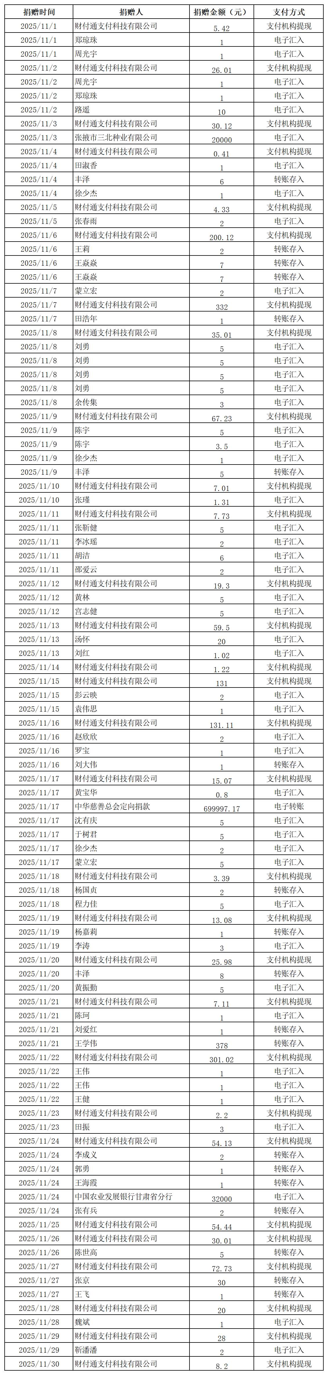 2025年張掖市慈善協(xié)會捐贈光榮榜(七)(銀行轉(zhuǎn)賬收入)